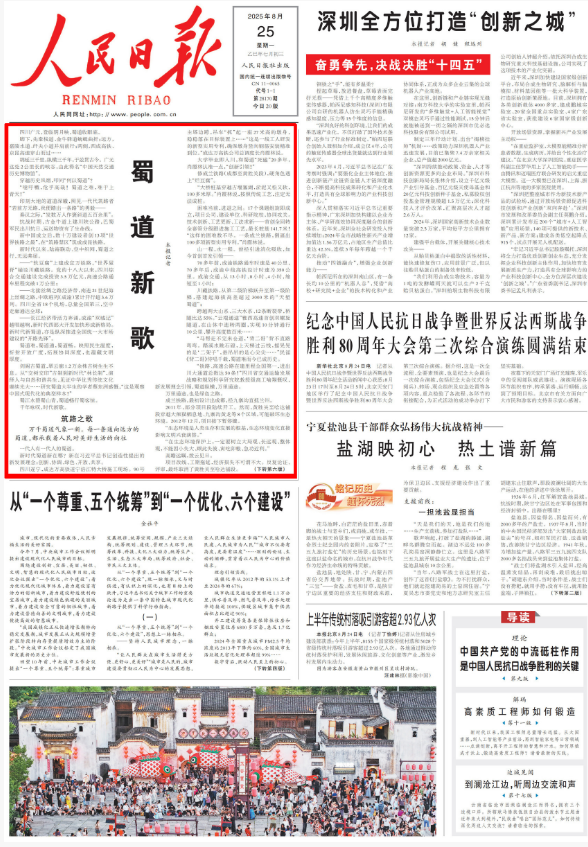 2025年8月25日,《人民日报》在头版头条刊发了长篇通讯《蜀道新歌》