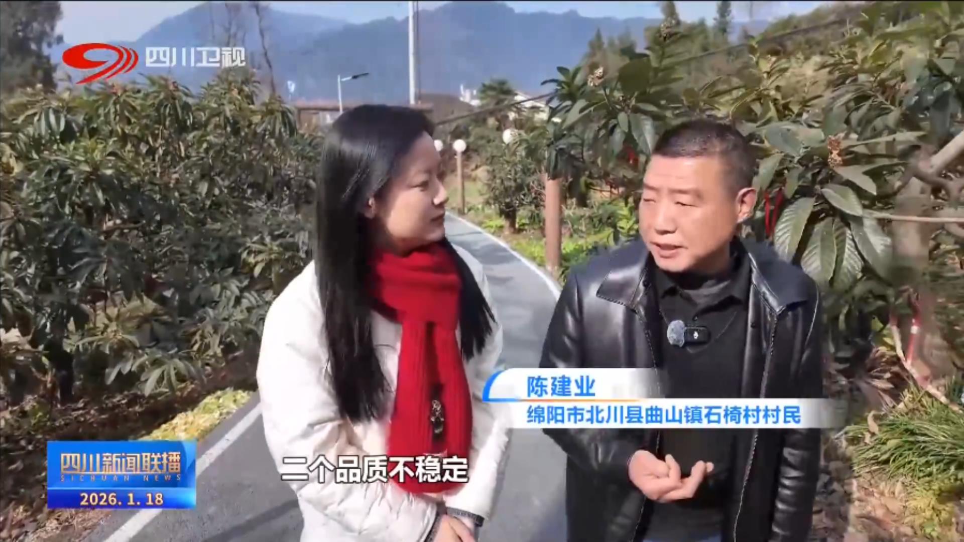 绵阳市北川县曲山镇石椅村村民 陈建业:以前(枇杷)一个产量不稳定,二个品质不稳定。这几年,市农科院他们在派专家来指导我们,所以这几年老百姓的水果品质和产量都很稳定。像去年我都卖了六七十万元,老百姓现在很有兴趣种这个。