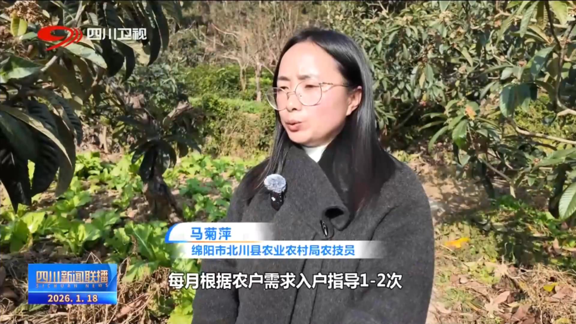 绵阳市北川县农业农村局农技员 马菊萍:每月根据农户需求入户指导1-2次,眼下正值枇杷冬季管护防冻害、促营养的关键期。科学的管护指导有效保障枇杷的品质与成活率,让村民的收入实现年年稳增。