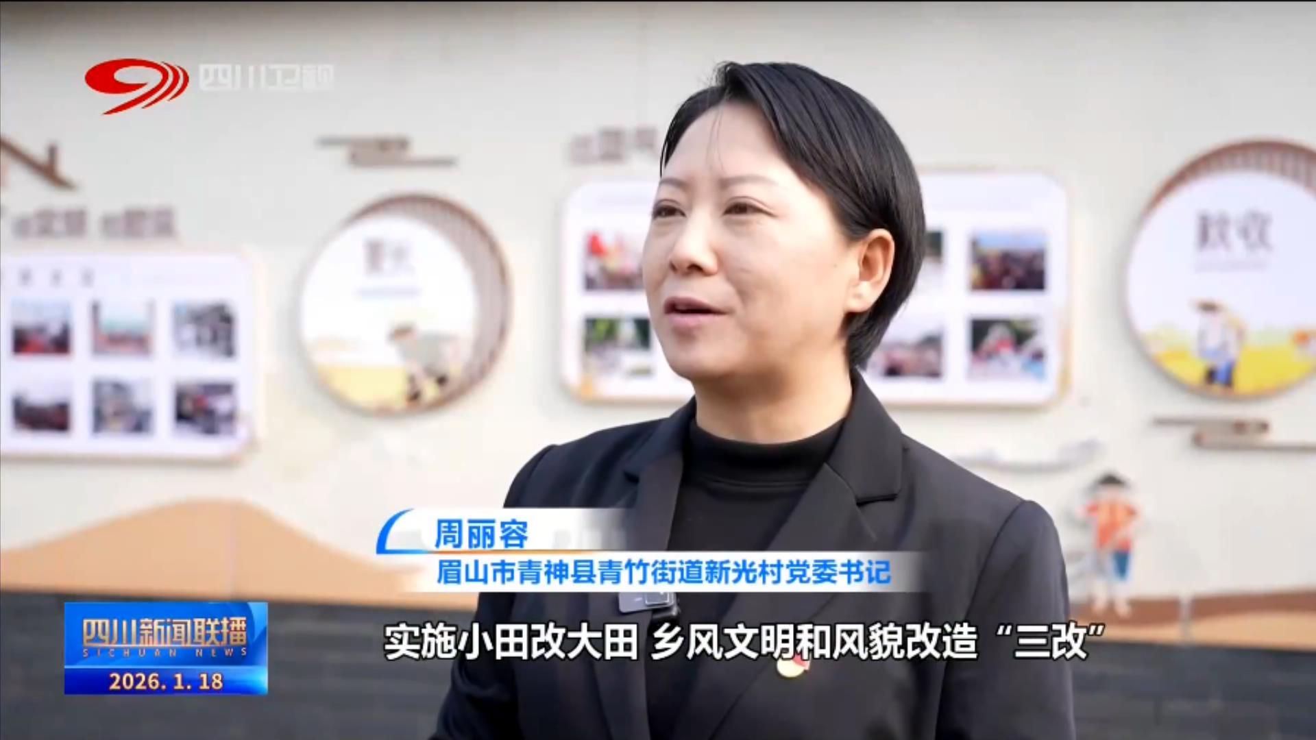 眉山市青神县青竹街道新光村党委书记 周丽容:实施小田改大田、乡风文明和风貌改造“三改”,打造“竹里稻香”美丽乡村。未来,我们将深化农旅融合,推出稻田婚礼、篝火晚会等特色活动,吸引更多业态参与。